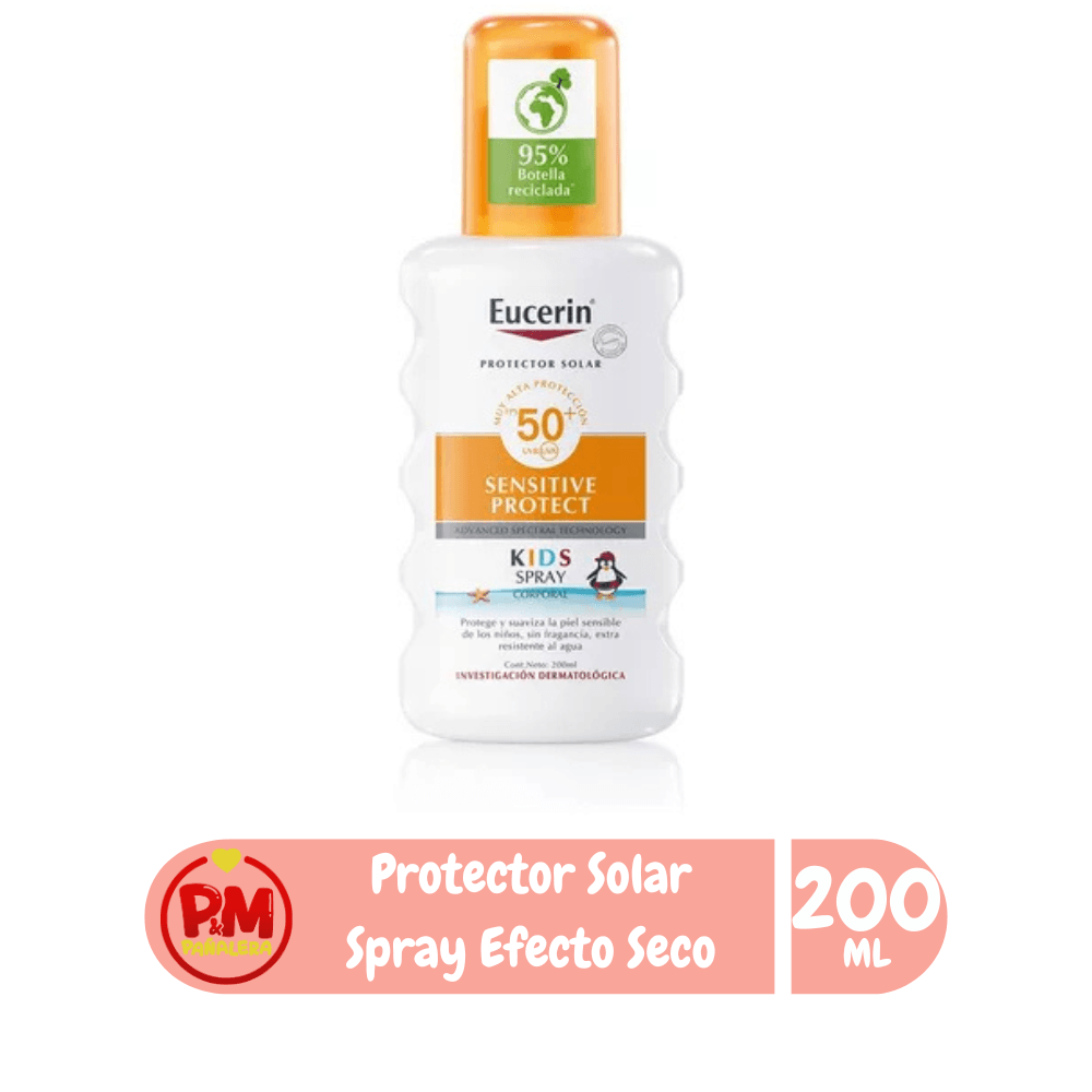 Eucerin Sun Kids Spray FPS 50+ está desarrollado para proteger la piel sensible de los niños de las quemaduras solares y brinda protección celular biológica para reducir el riesgo de los daños en la piel a largo plazo inducidos por los rayos UV. Es libre de parabenos, colorantes y perfumes. Muy resistente al agua.
