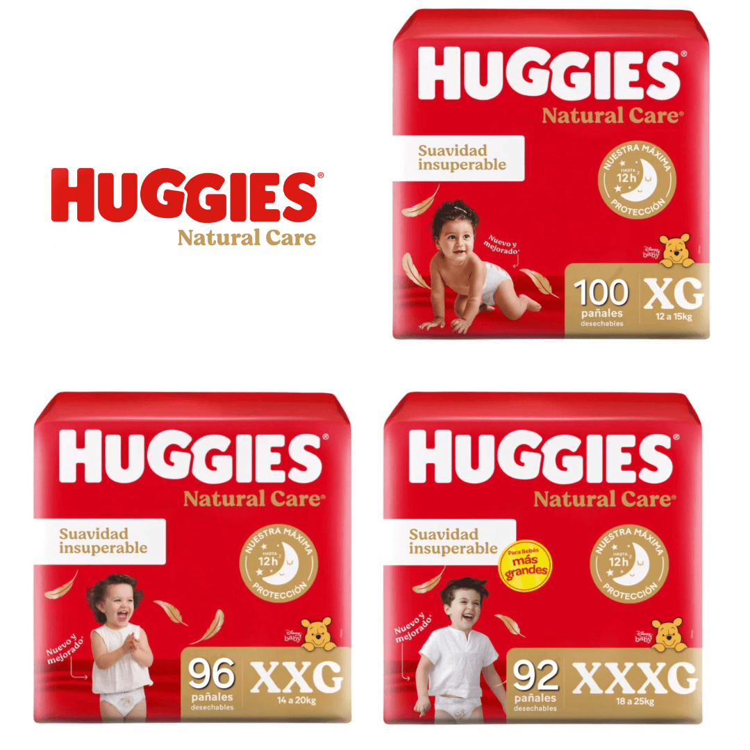 Los pañales premium Huggies Natural Care son sinónimo de protección y comodidad. Con hasta 12 horas de protección y un sistema de absorción especial de caquita líquida que evita filtraciones, tu bebé estará limpio y seco en todo momento. Además, tienen más de 10.000 poros transpirables que contribuyen a proteger su delicada piel contra las irritaciones y a mantener su piel súper fresquita. Y, por si todo esto fuera poco, los Pañales Huggies Natural Care son hipoalergénicos y súper suaves. ¡Son tan completos que de lo único de lo que debes preocuparte es de disfrutar de tu pequeño