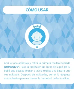 Las toallitas húmedas para bebé JOHNSON’S® baby Recién Nacido fueron especialmente desarrolladas teniendo en cuenta que la piel del recién nacido necesita cuidados especiales para limpiar todas las suciedades de manera suave y eficiente. No contiene fragancia ni alcohol.