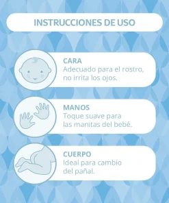 - Limpian la delicada piel de tu bebé, sin irritarla ni resecarla.