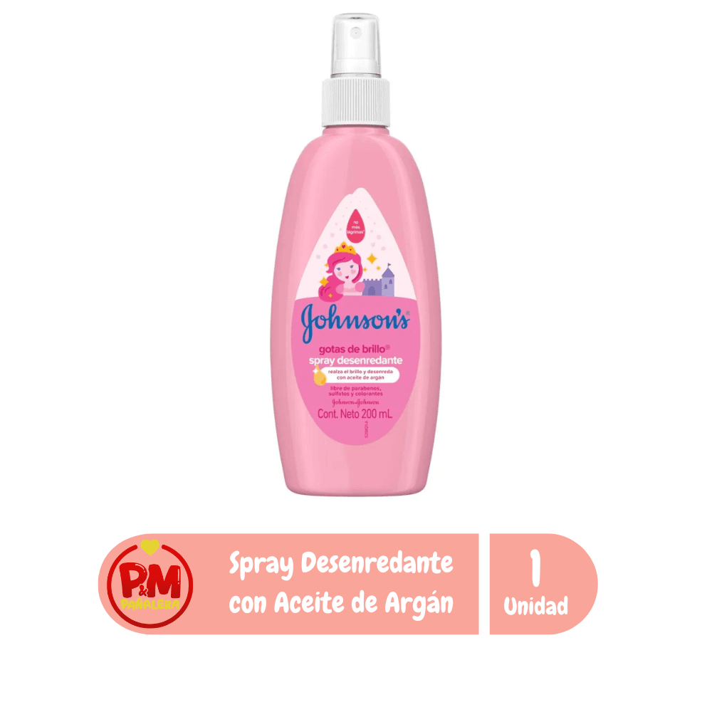 El Spray para peinar gotas de brillo esta compuesto por la formula no mas lagrimas que hace que en el momento de aplicar el producto a tu princesa sea mágico. Logra desenredar cabellos muy enredados y para su facil uso de hacer peinados. Su formúla posee ph balanceado, proteinas de seda y aceite de Argán que deja un toque de suavidad, brillo y sedoso.