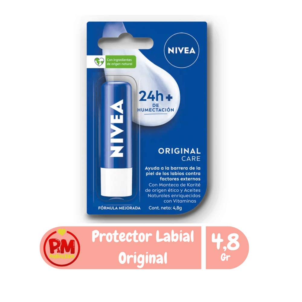 El Protector labial NIVEA Essential Original Care cuida los labios para mantenerlos suaves y protegerlos del resecamiento durante todo el día. Su fórmula con Aceites de origen Natural y Manteca de Karité tiene una placentera textura que se funde instantáneamente en los labios dejando una apariencia natural, tersa y sin color.