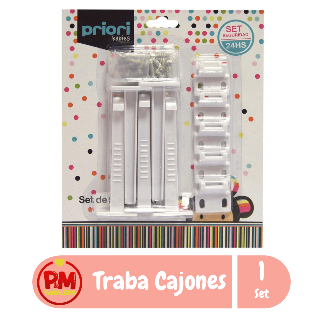 Traba cajones por 5 unidades. Fácil instalación, su función consta de evitar que abra completamente los cajones y que el niño/a se golpee.