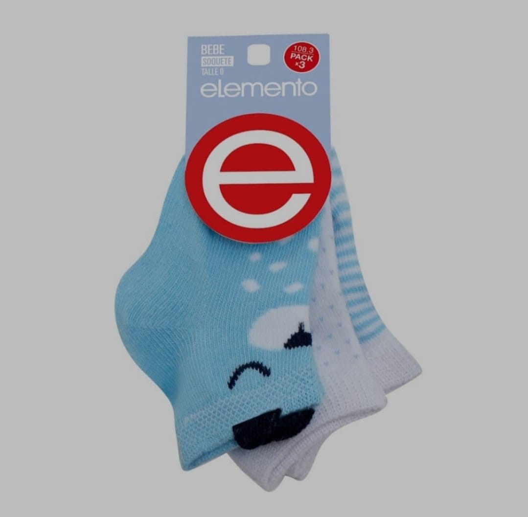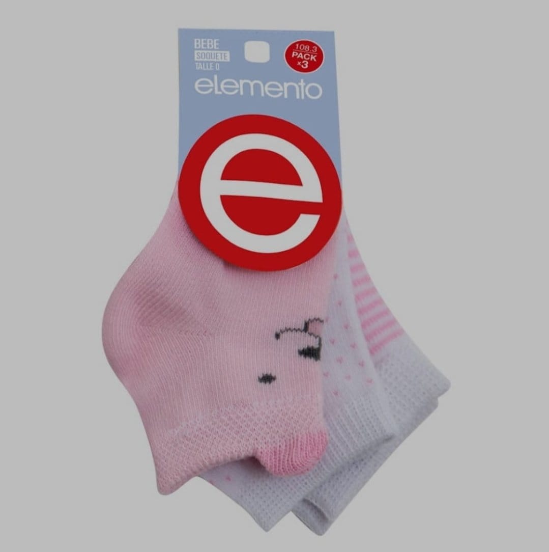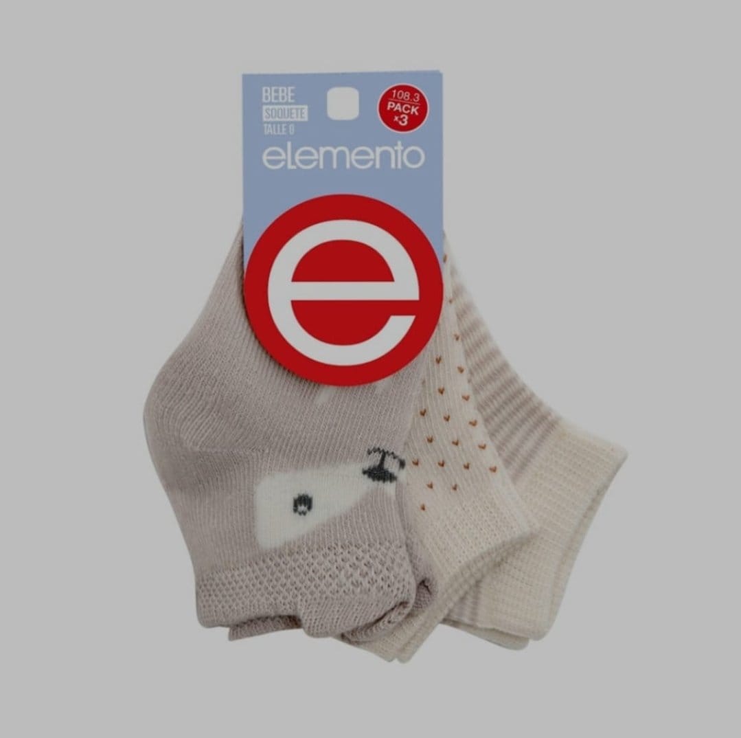 Soquetes con Orejitas Pack x3 Elemento Estampadas Talle 1